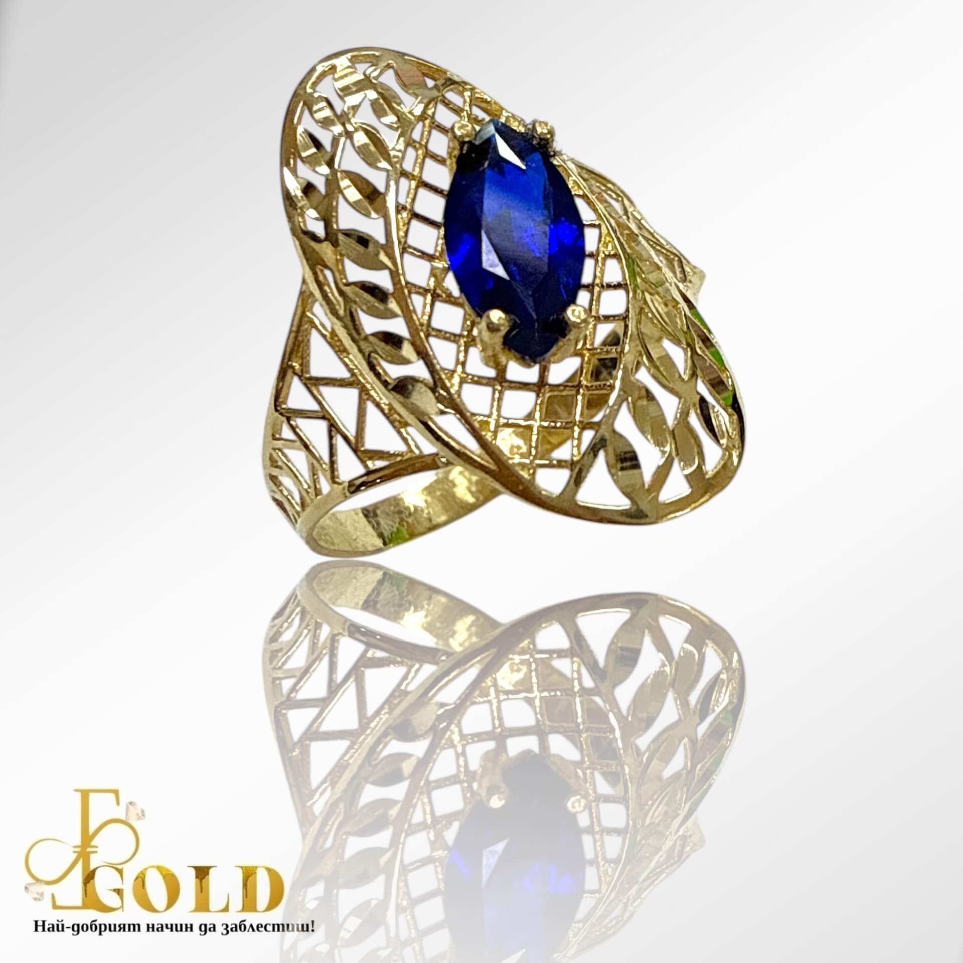 Златен дамски пръстен със син камък (К-1035)