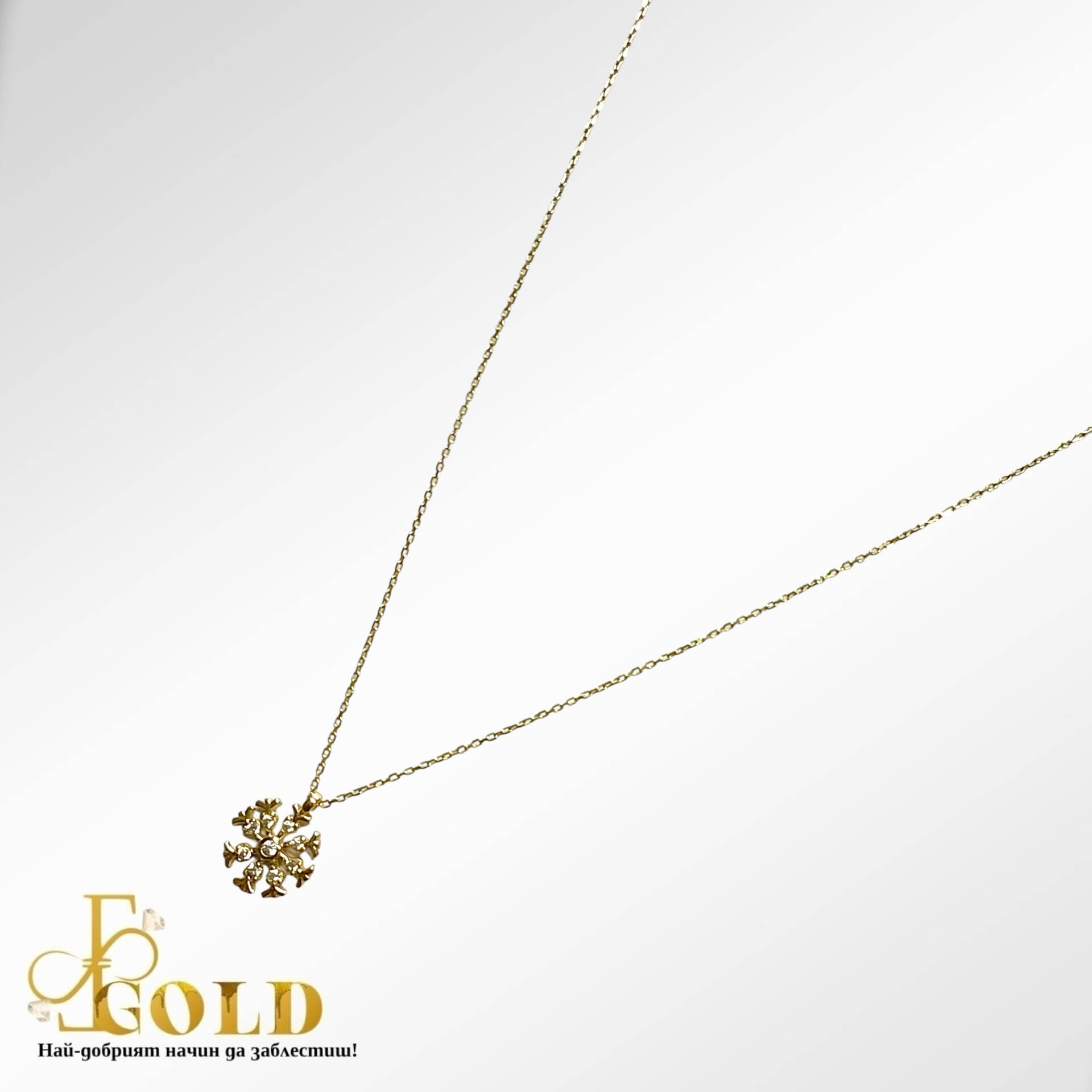 Златен синджир с медальон снежинка (К-1483)