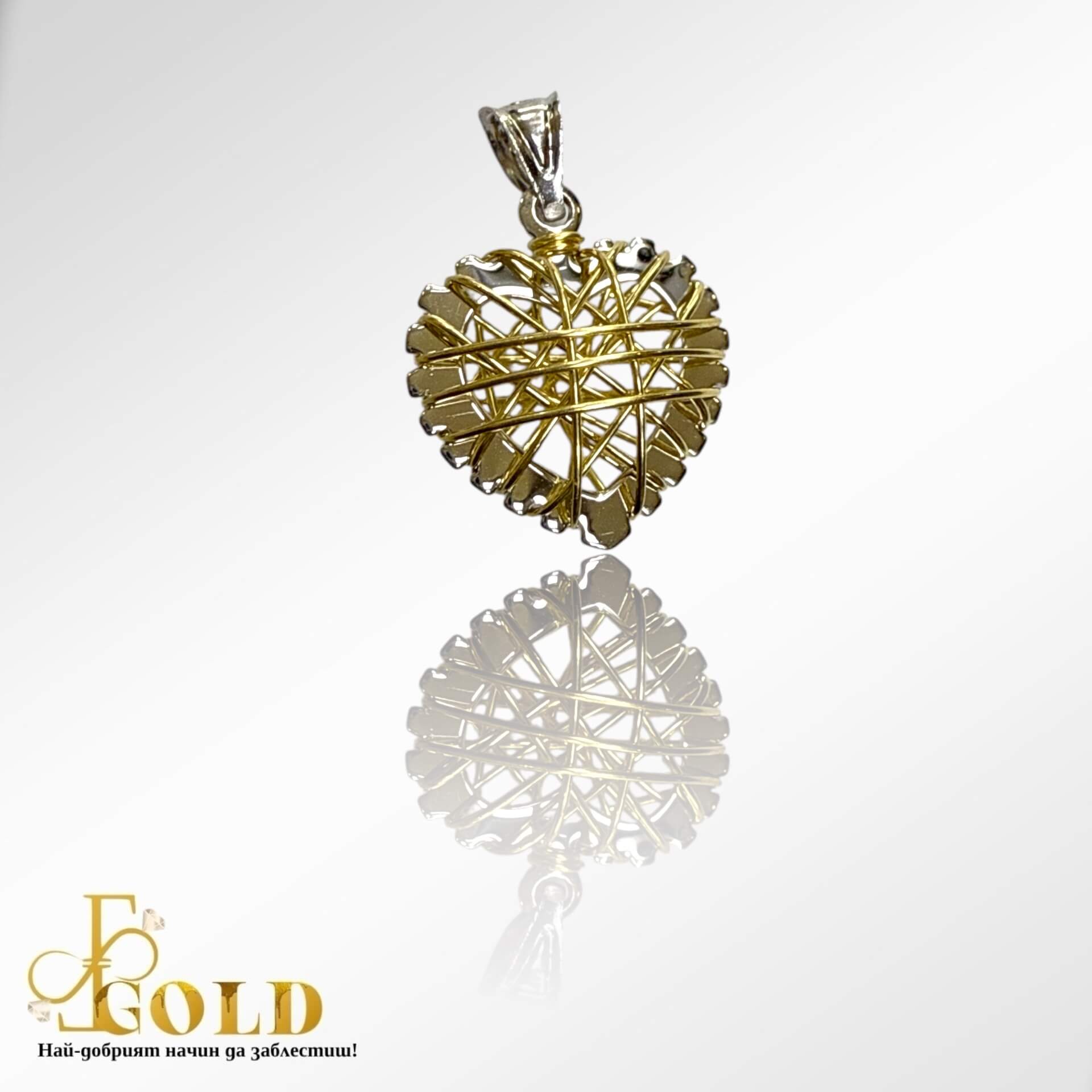 Златен медальон сърце с бяло злато (A-1808)