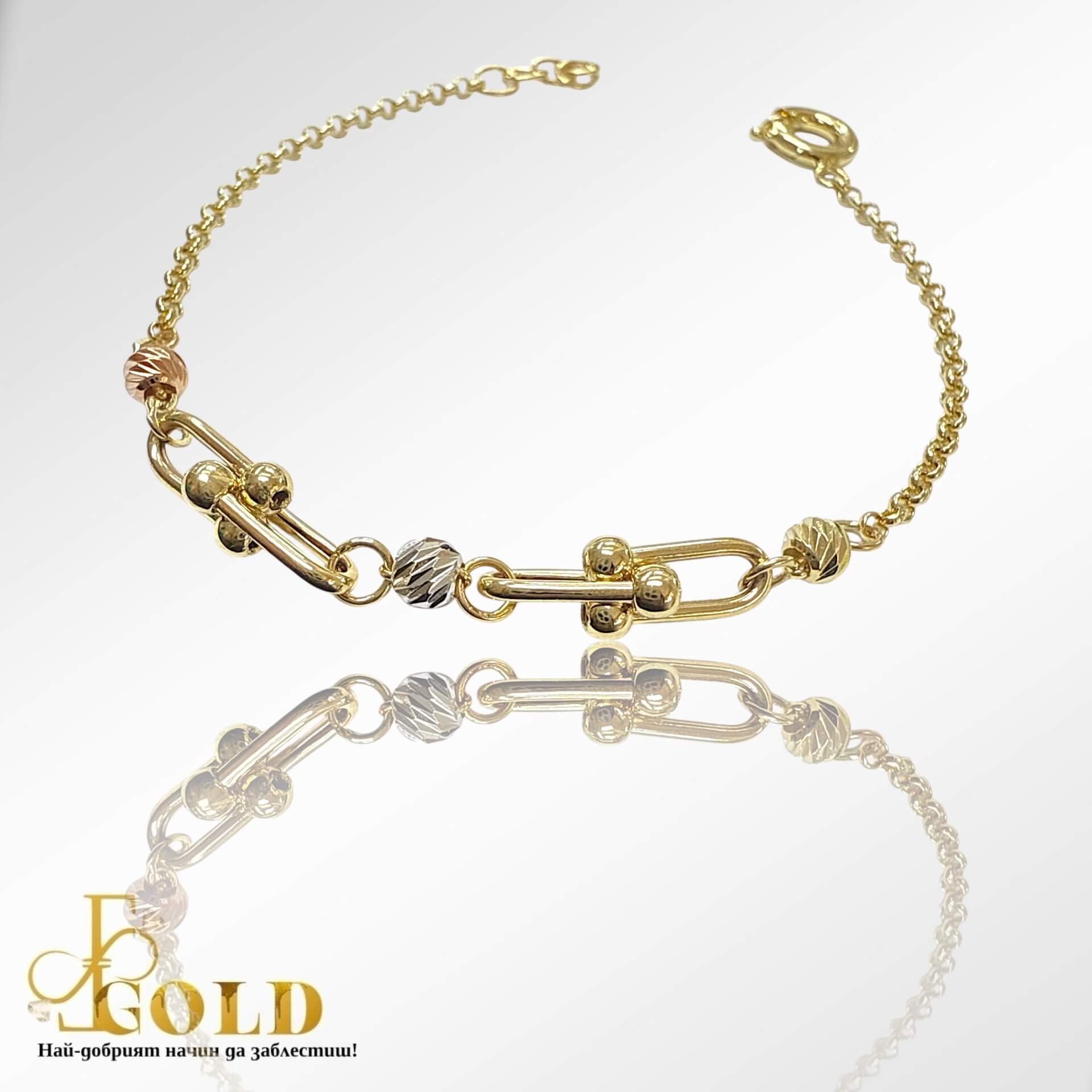 Златна бутикова гривна с три цвята злато (К-1524)