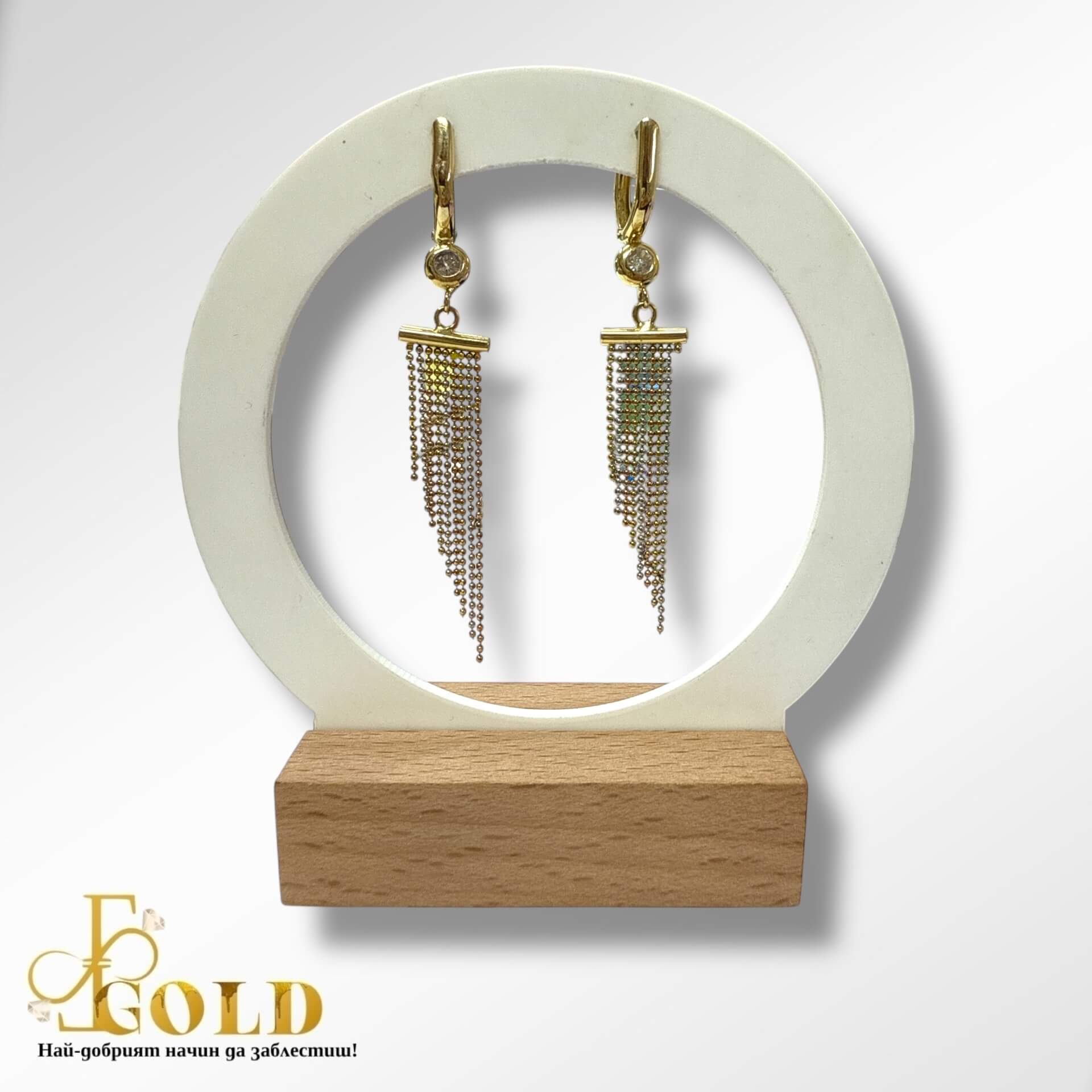 Златни висящи обеци с три цвята злато (Р-721)