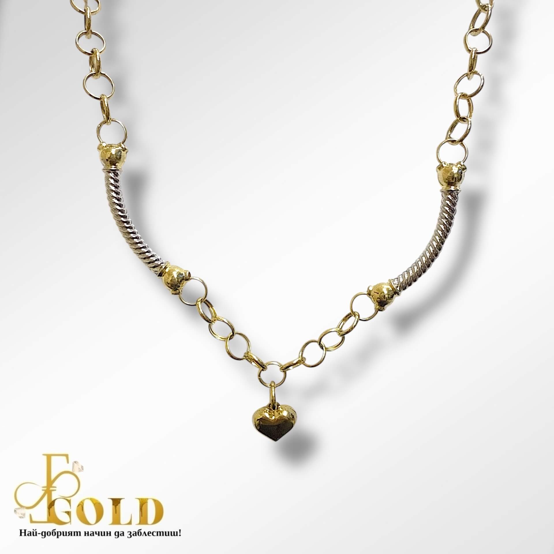 Златен синджир с бяло злато и сърце (С-955)