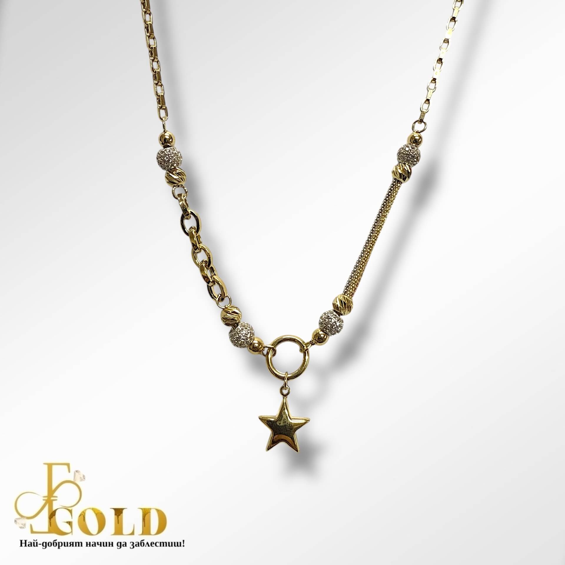 Златен бутиков синджир със звезда и три цвята злато (К-1537)