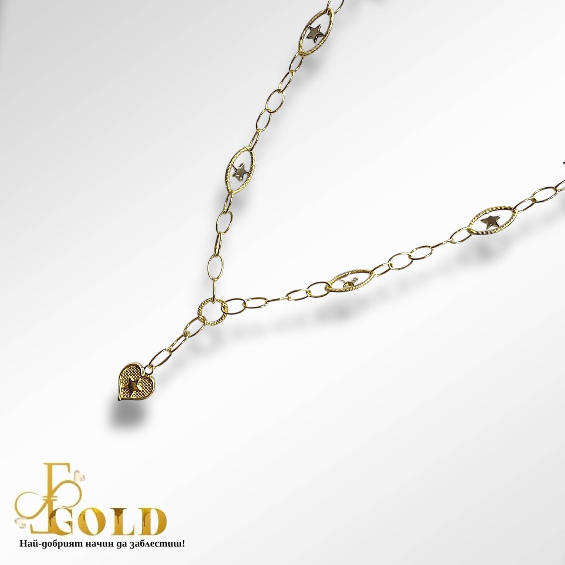 Златен олекотен синджир със сърце и звезди (С-1006)