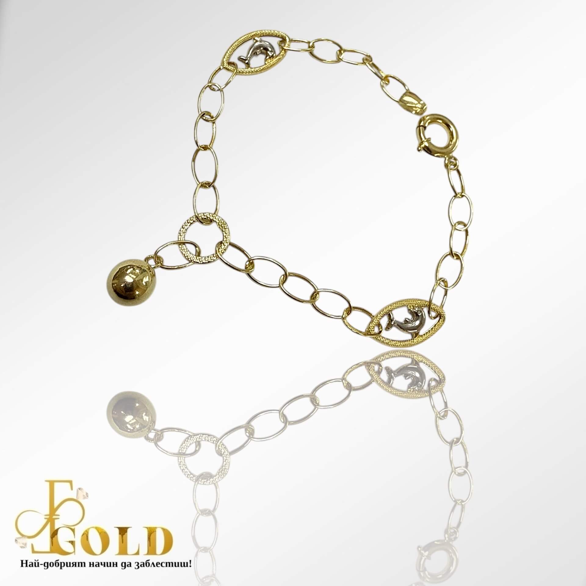 Златна гривна ас топче и делфин (С-1031)