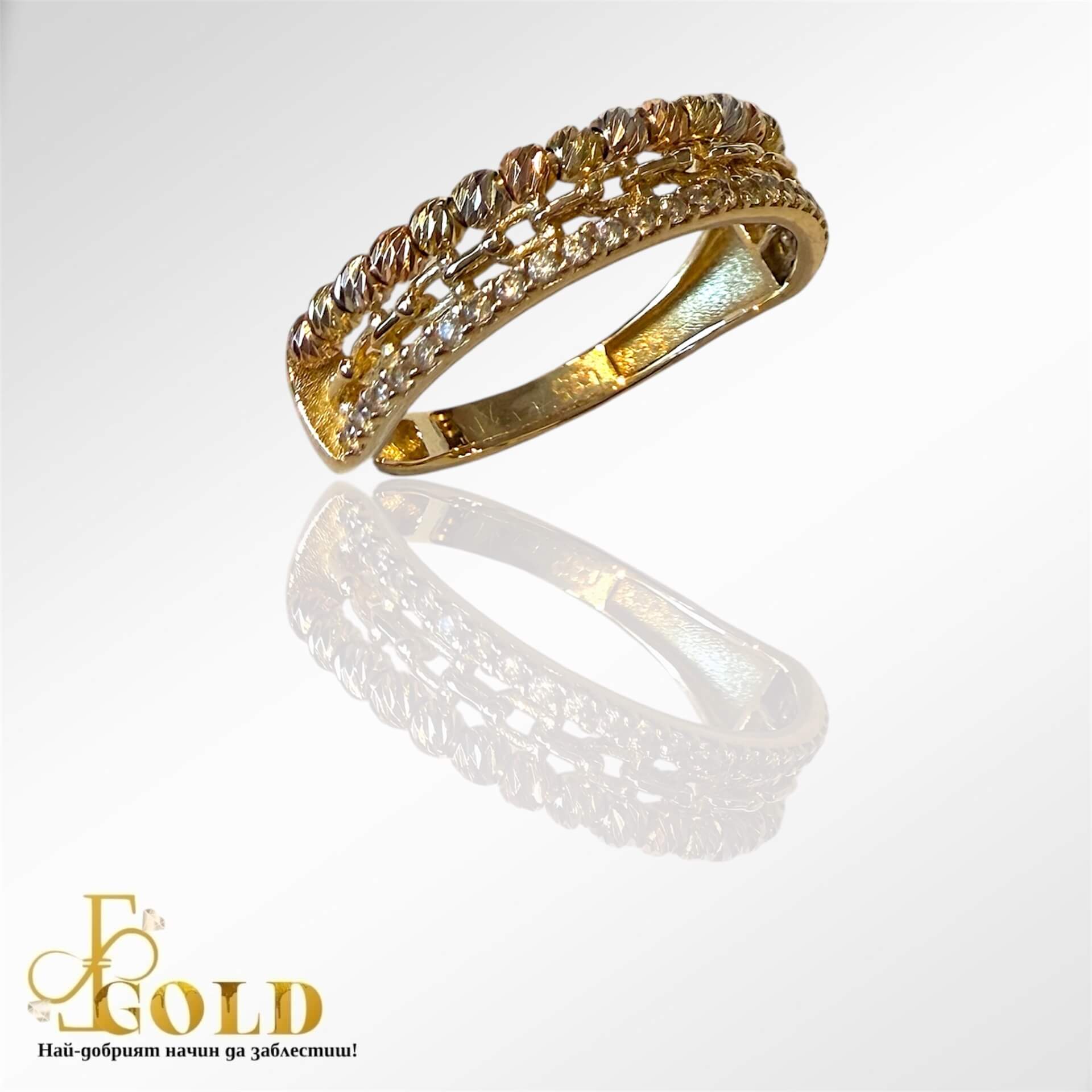 Златен пръстен с три цвята злато (A-2442)